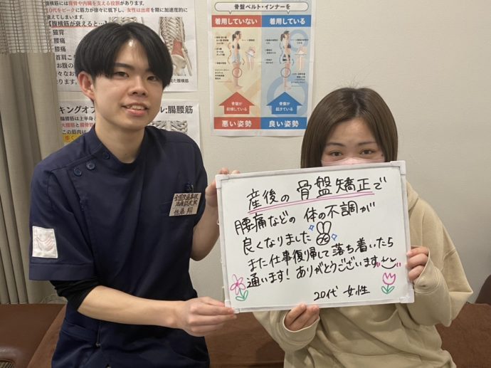 産後の骨盤矯正で腰痛などの体の不調が良くなりました!