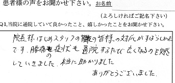 腰痛の症状も通院するたび良くなるのを実感していきました。